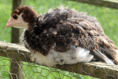 | 12th: So, in an effort to bring some good news to the blog, we are happy to report that our turkey poults (currently over 30) are now enjoying some quality outside time (in between the showers) as we have netted off a small area immediately outside the pop hole to their broody area, so they can wander in and out when they like. Napoleona is proving to be an exceptional mum and even though she only has two of her own poults left (the rest have been sold), she is essentially a mum to them all. We still have two goslings living with the turkeys and at night, it is rather extraordinarily cute to see everyone snuggled up together. Napoleona is often under a heat lamp herself with the youngest poults under her whilst the rest squash up against the goslings or in some cases try to burrow themselves underneath!!! Coriander may also be picking up again and in all the fields, animals are settled and we have had no more 'cold chicks' dramas (we missed out the exploding egg story from last night - and yes, it was as bad as it sounds...)!! |