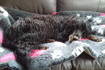 27th: In order to be fair!!! Roxy gets a great big whelping box and so the others get a blitz of the dog room and brand new fluffy vet beds!!! Dragonfly looks so cozy!!!
