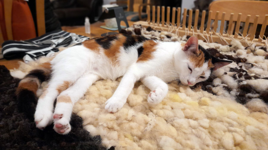 27th: Living in hope The rug may not be finished - and is destined as a floor mat in the bathroom anyway - but Mustard has tried it out for size and is now living in hope!!!! ![]() |