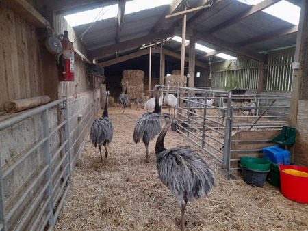 18th: Storm Eunice Well, Storm Eunice has done her worst: we have lost bits of skylights from both the stables and the barn, leaving gaping holes in both roofs; our hayracks on wheels have been blown over and damaged plus - and this proves how really bad it has been - the rhea all but put themselves in the barn in an effort to escape the hideous wind and rain. We are also without electricity - thank goodness for our generator which means we can keep the Stanley going and have a couple of lights plugged in, not to mention the wood burner which is ensuring we keep the puppies warm. No idea when it might be restored so we are set to have a few challenging days ahead for sure!! ![]() ![]() |