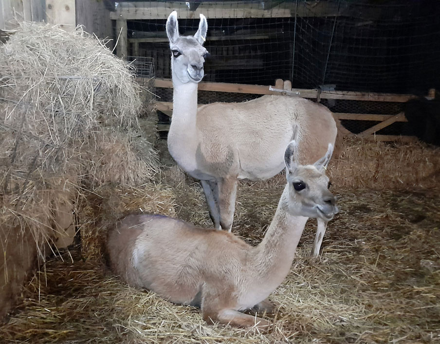 27th: More progress Our guanacos are no longer screaming at our dogs on a daily basis and I do believe Ben here is actually smiling at Pepper, one of our cats!! Progress!!! ![]() ![]() |