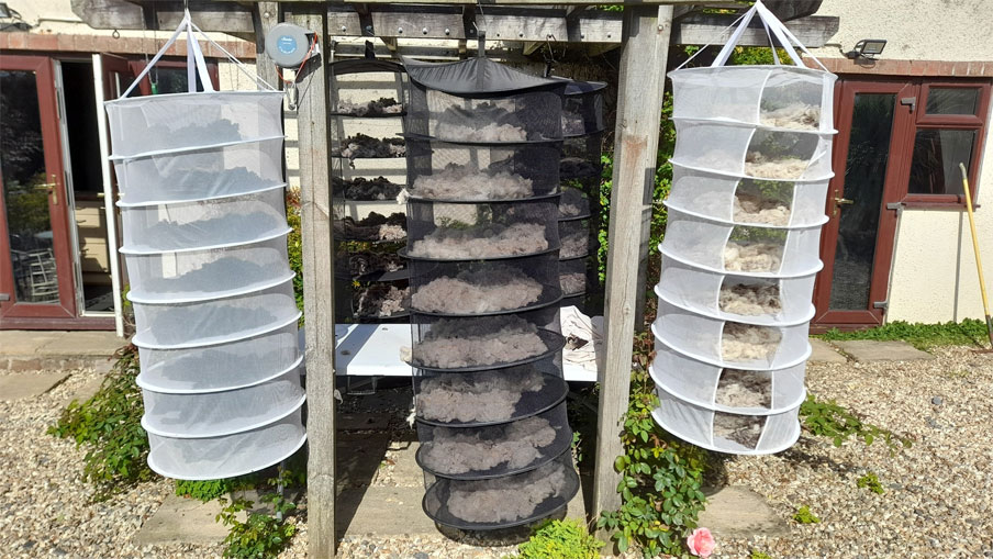24th: Scrummy Shetland fleeces Lucky us having all these scrummy Shetland fleeces to work with for a new commission. Thank goodness for glorious September weather for washing and drying!! ![]() ![]() |