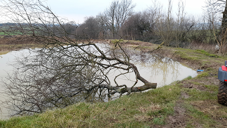 13th: Fallen Trees Today we finally got around to clearing the trees felled by Storm Darragh. We then dragged two to a place on the land to become yet another habitat for wildlife and another two we took to John's Pond, resting the end of each trunk on the banks and then getting the bulk of the rest of the tree to float on the water. Deadwood in ponds provides a really diverse habitat for aquatic life by creating hiding spaces, places to breed as well as food sources and fabulous perching places. Decaying wood in general provides a rich source of nutrients which enhance the biodiversity of both land and water