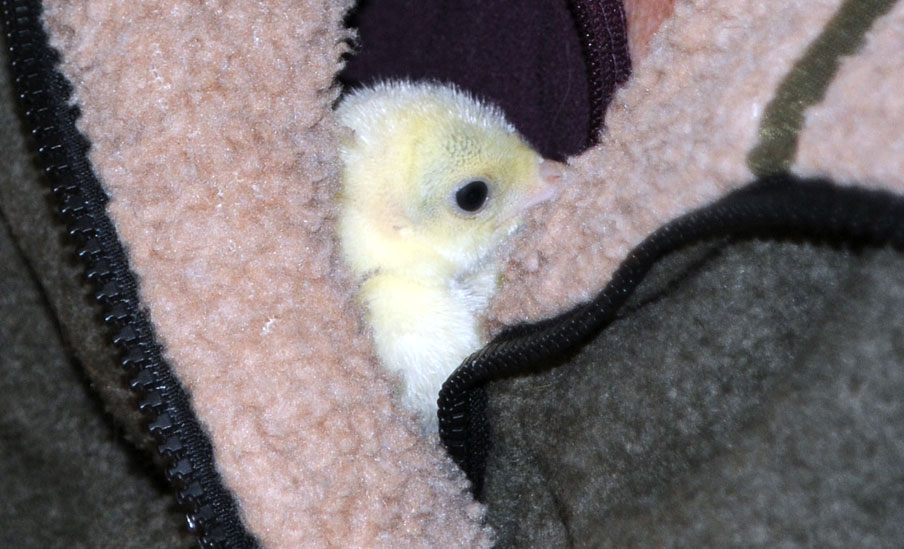 ![]() When on his/her own, our single poult was VERY loud and cheeped pretty much constantly. As soon as we brought her out of her box and heat lamp set up, she was quiet!! Funny that!! ![]() |