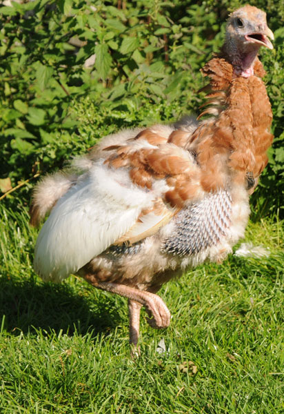 Turkeys are such amazingly sociable animals, with each other. We have a great range of ages amongst the youngsters this year but everyone gets on and on the whole they spend their days as one large group.