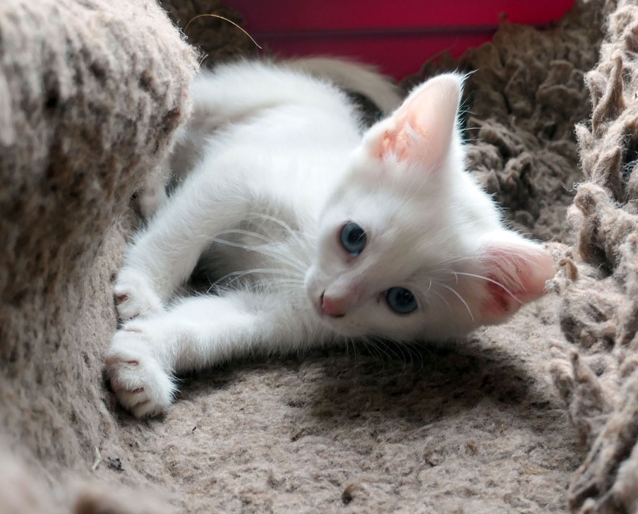Well, in typical 'you wait an hour for one bus and then three come along at once' fashion.., last night we found an advert for white kittens!! Since losing Salt we had hoped to find a white replacement but we'd had zero luck, hence our purchase last week of Chili (see 30th March). Salt 2, as she is affectionately going to be known, is one of a litter of five from two white parents. Four of the five were white and one a tabby (No, we don’t understand cat genetics either..).