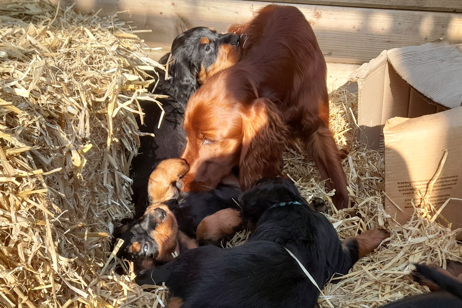 Birth: Monday 13th June 2022 We are delighted to announce the arrival of Roxy's second litter of Gordon Setter pups